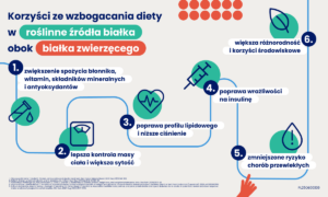 Zwiększenie udziału produktów roślinnych (zwłaszcza bogatych w białko), kosztem części produktów zwierzęcych, ma szereg udokumentowanych korzyści zdrowotnych m.in.: