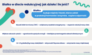 Białko jest jednym z kluczowych makroskładników, które należy dostarczać do organizmu. Jest niezwykle ważne w trakcie stosowania diety redukcyjnej, pełni bowiem rolę budulcową (w odniesieniu do masy mięśniowej) i ma wysoki efekt termiczny pożywienia (jego trawienie, wchłanianie i metabolizm zużywa więcej energii niż w przypadku węglowodanów czy tłuszczów). Źródła białka można podzielić na: